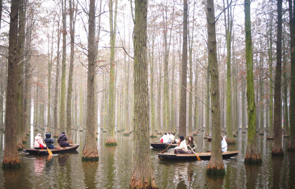 图为审计人员泛舟踏青